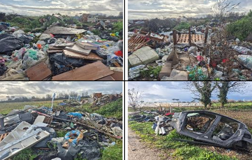 Nel sito odierno saranno smaltite un totale di oltre 500 quintali di varia tipologia di rifiuto abbando-nato abusivamente lungo il ciglio stradale e nelle zone limitrofe: mobilio, materassi, sfalci, carcasse di veicoli e plastiche varie per un totale circa di 1500 m2.