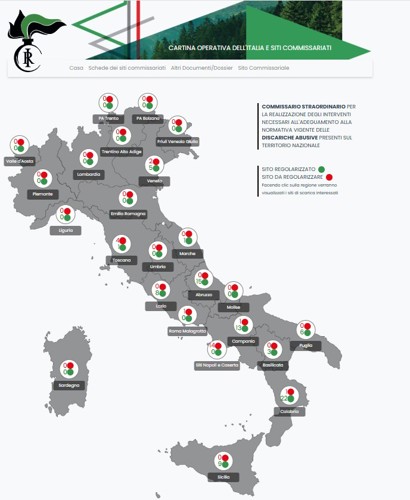 con la MAPPA NAZIONALE DEI SITI COMMISSARIATI e le relative info geo-morfologiche di ciascuna discarica:
